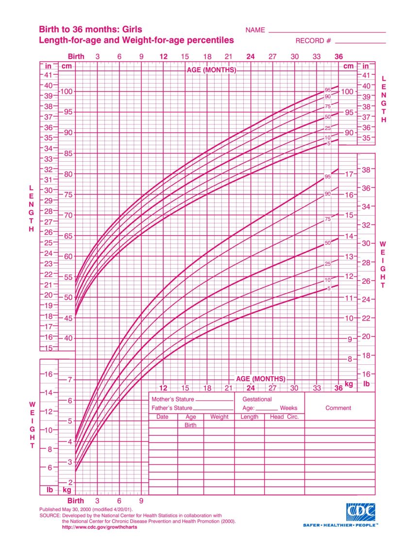 Birth to 36 months' Girls Growth Chart Free Download